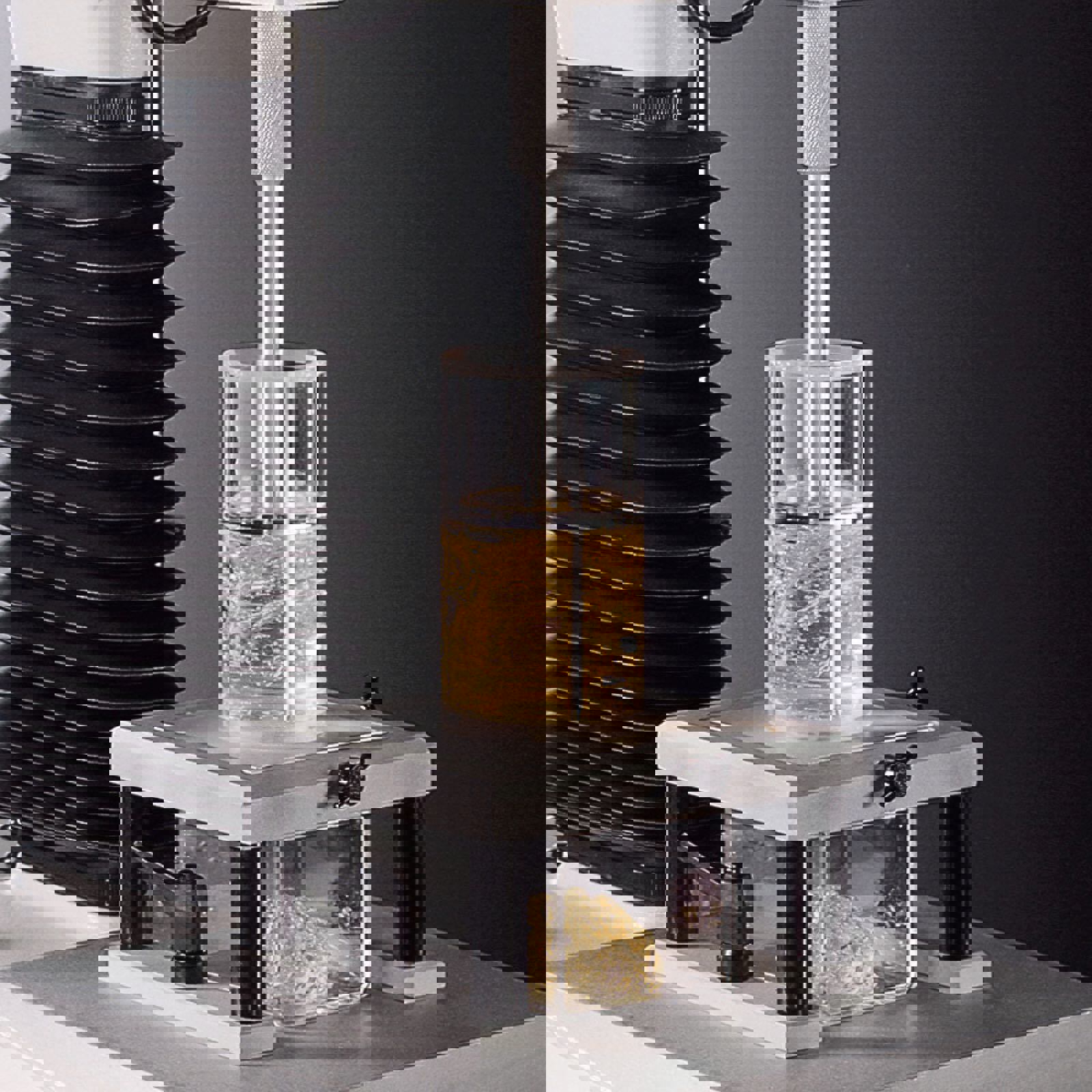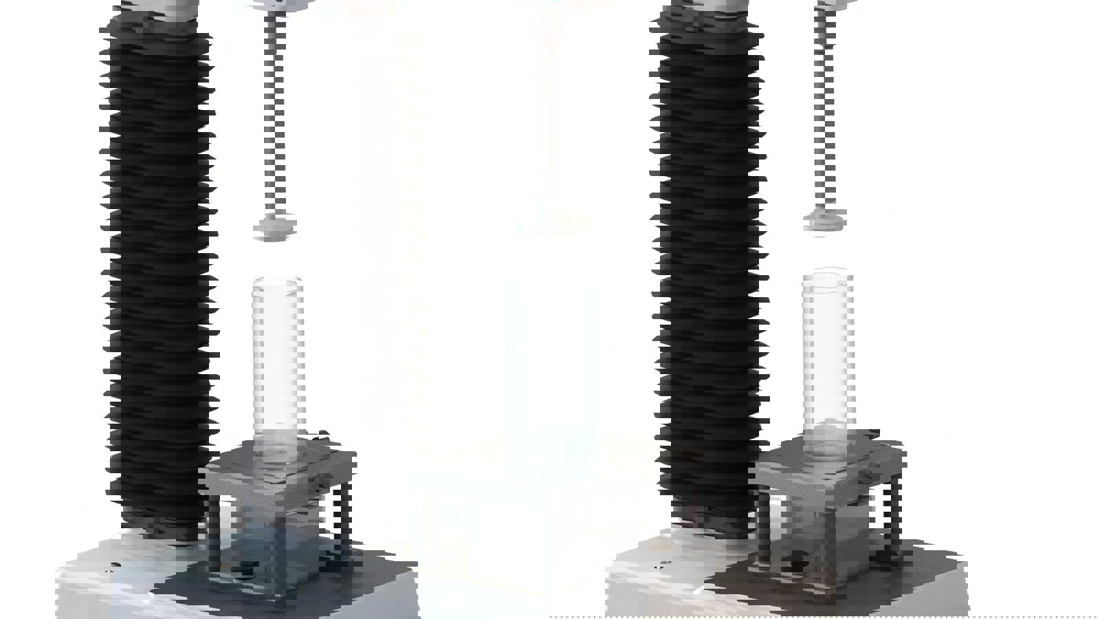 To attempt to mimic this situation a forward extrusion test can be employed. A Forward Extrusion Rig measures the compression force required for a piston disc to extrude a product through a standard size outlet in the base of the sample container. The base of the container accommodates a disc containing a central hole (termed the annulus) of varying diameter (3, 5, 7 or 10mm), depending upon the consistency of the sample. The complete sample container is located into a centralising insert fitted into the Heavy Duty Platform and a piston disc is attached to the load cell using a probe adapter which acts almost like a piston to compress the sample and causes forward flow through the annulus of the disc.