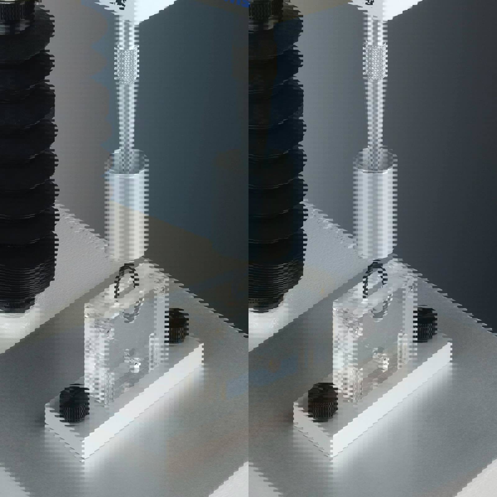 The Intravaginal Ring Holder is designed for precision testing of vaginal rings (VRs) used in controlled drug release applications, including contraception, hormone replacement therapy, and microbicide delivery for HIV prevention. This holder supports the ring to ensures accurate and repeatable measurements of mechanical integrity, compression strength, and fatigue resistance during repeated cycles. These mechanical property measurements are key factors in VR performance and are ideal for R&D laboratories, regulatory compliance testing, and quality control departments involved in vaginal ring development and manufacturing. Assessment of the mechanical performance of vaginal ring devices is an essential part of the design process, particularly in understanding the effects of different elastomer choices on ring performance.
